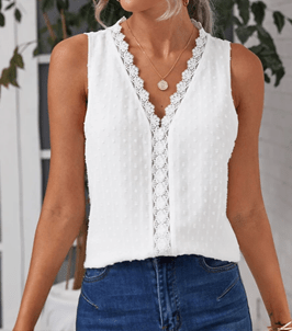 The tank top above is regularly priced at $14 and I purchased it for $5.70 on sale and with a coupon applied. It comes in black, white, pink and dusty blue (the dusty blue is such a sweet summer color). I love this elevated tank top for its unique dot-textured fabric and its lace embroidered V-neckline. I also like how the lace embellished spaghetti straps provide more coverage to hide bra straps underneath. I think it would be easy to get away with wearing a nude bra without any straps showing.
